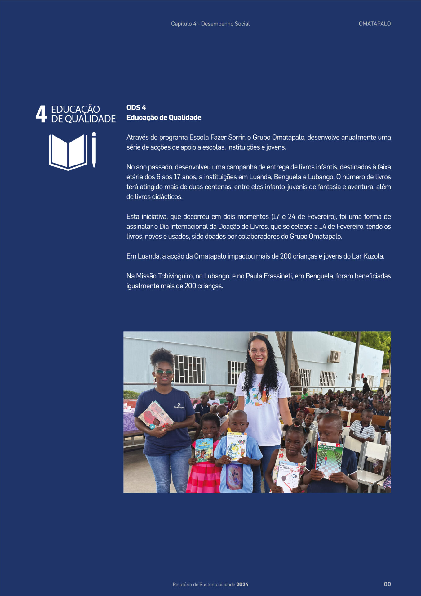 O Grupo OMATAPALO acaba de publicar o seu primeiro Relatório de Sustentabilidade, referente ao ano de 2024, marcando um marco histórico na sua trajectória de transparência, responsabilidade corporativa e compromisso com o desenvolvimento sustentável.