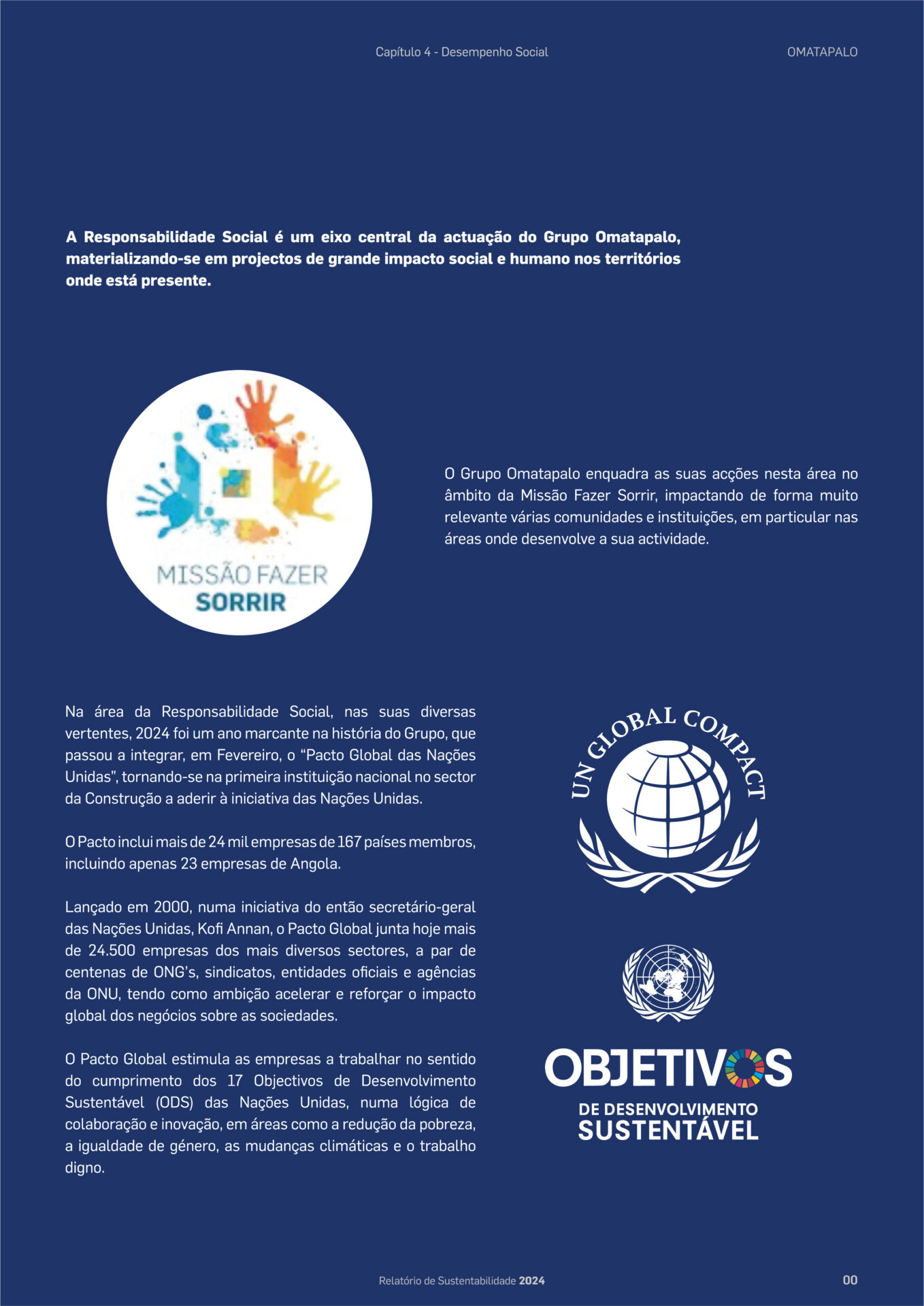“Este exercício de transparência”, acrescenta Mamboza, “é também uma ferramenta de gestão fundamental. Desafia-nos a ser melhores, a medir o nosso impacto com rigor e a acelerar a transição para um modelo de negócio ainda mais resiliente e alinhado com os princípios do Pacto Global. Estamos a investir não só no futuro do Grupo, mas no futuro sustentável de Angola e das comunidades que servimos.”